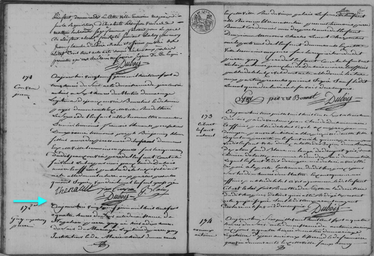 Il y a un seul document pour cet aïeul qui est l’acte de naissance du fils légitime de Pierre Guy, Instituteur, marié à Marie Chanel.